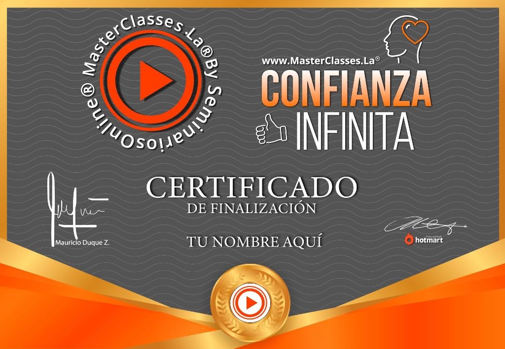 El MasterClass CONFIANZA INFINITA te ayudará a descubrir tu potencial y crear estrategias eficientes para alcanzar tus sueños y objetivos. A través de contenido estructurado paso a paso, aprenderás a controlar tus pensamientos y emociones, identificar tus fortalezas y puntos de mejora, y transformar las crisis en oportunidades. Además, recibirás bonos adicionales como meditaciones y una masterclass de comunicación con PNL. No pierdas la oportunidad de convertirte en una persona confiada y segura de sí misma. Obtén tu certificado avalado por Hotmart y Seminarios Online.