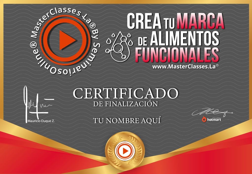 ¡Descubre el increíble mundo de los alimentos funcionales con el MasterClass «Crea tu Marca de Alimentos Funcionales»! Aprende a producir y comercializar estos productos en cualquier canal de ventas y en distintos países del mundo. Conoce los suplementos dietarios, las fibras, los colágenos, las vitaminas y mucho más. Además, te enseñaremos cómo acceder a proveedores de maquilas e insumos para que puedas montar tu propio negocio. Con este curso, conocerás cuántos millones de dólares genera esta industria en el mundo y en LATAM, y podrás establecer tus metas de ganancias. Aprenderás diferentes modelos de negocios e ingresos para comenzar a trabajar de inmediato en este sector. También te enseñaremos cómo crear tu propia marca de alimentos funcionales, desde la creación del negocio hasta la validación y obtención de permisos. Conoce las normas y regulaciones para fabricar y comercializar estos productos, así como las categorías y subcategorías para segmentar el mercado y tener un negocio exitoso. Obtén listados de proveedores de maquilas e insumos, y accede a un certificado avalado por Hotmart y Seminarios Online. ¡No pierdas esta oportunidad de emprender en el mundo de los alimentos funcionales!