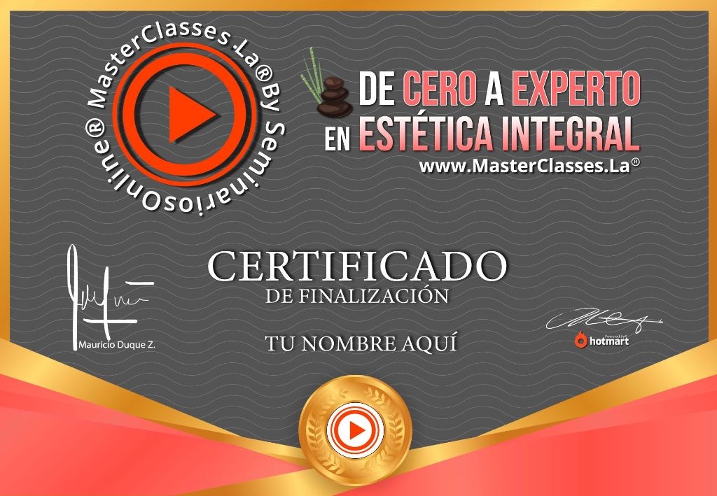¡Conviértete en un experto en estética integral con el MasterClass DE CERO A EXPERTO EN ESTÉTICA INTEGRAL! Aprenderás todos los conocimientos y prácticas necesarias para destacarte en la industria de la belleza. Obtendrás habilidades clave como el conocimiento de la anatomía del cuerpo humano, el uso de equipos estéticos, la realización de masajes y mucho más. Además, recibirás un certificado avalado por Hotmart y Seminarios Online. ¡No pierdas la oportunidad de crear tu propio negocio y centro de estética!