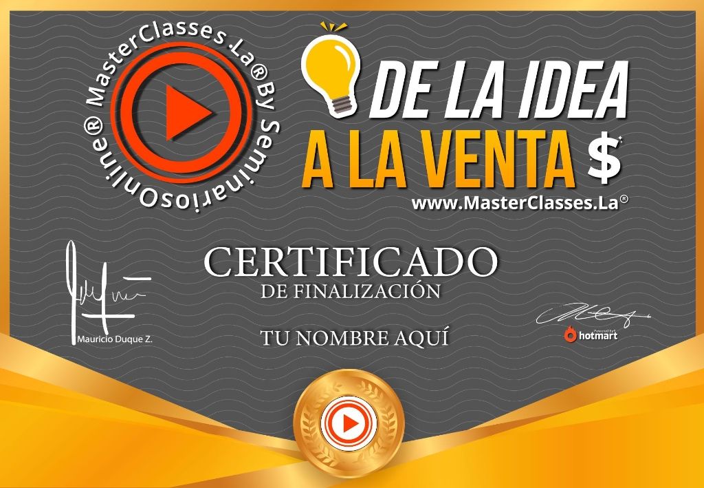 El curso «Master Class DE LA IDEA A LA VENTA» te ayudará a poner en marcha tu idea de negocio y generar ventas en el menor tiempo posible. Aprenderás a optimizar los procesos de emprendimiento, utilizar los recursos de manera eficiente y aplicar estrategias para entender mejor a tu comprador y duplicar las ventas. Obtendrás resultados como la creación de productos o cursos virtuales, empresas y startups, diseño de productos y servicios, y solución de problemas de forma innovadora. Además, recibirás un certificado avalado por Hotmart y Seminarios Online. No pierdas la oportunidad de lograr tus objetivos de negocio de manera estructurada y fácil.