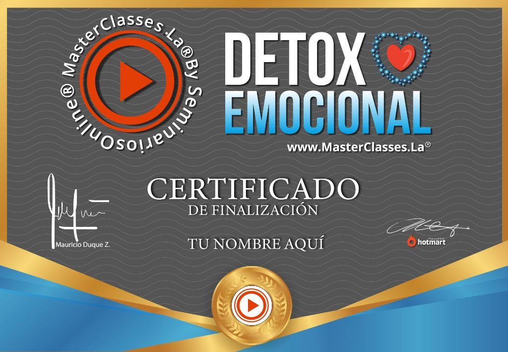 ¿Sabías que existen emociones tóxicas que pueden bloquear tu felicidad? Con el MasterClass DETOX EMOCIONAL, obtendrás las herramientas necesarias para gestionar tus emociones correctamente y eliminar esos sentimientos tóxicos que te impiden ser feliz. Aprenderás técnicas de autoconocimiento, sanación psicológica y terapia familiar, además de beneficiarte de las neurociencias aplicadas a la vida cotidiana. Con este curso, lograrás un profundo autoconocimiento, enfocar tu vida hacia tus objetivos y obtener paz y felicidad. ¡Obtén tu certificado avalado por Hotmart y Seminarios Online!