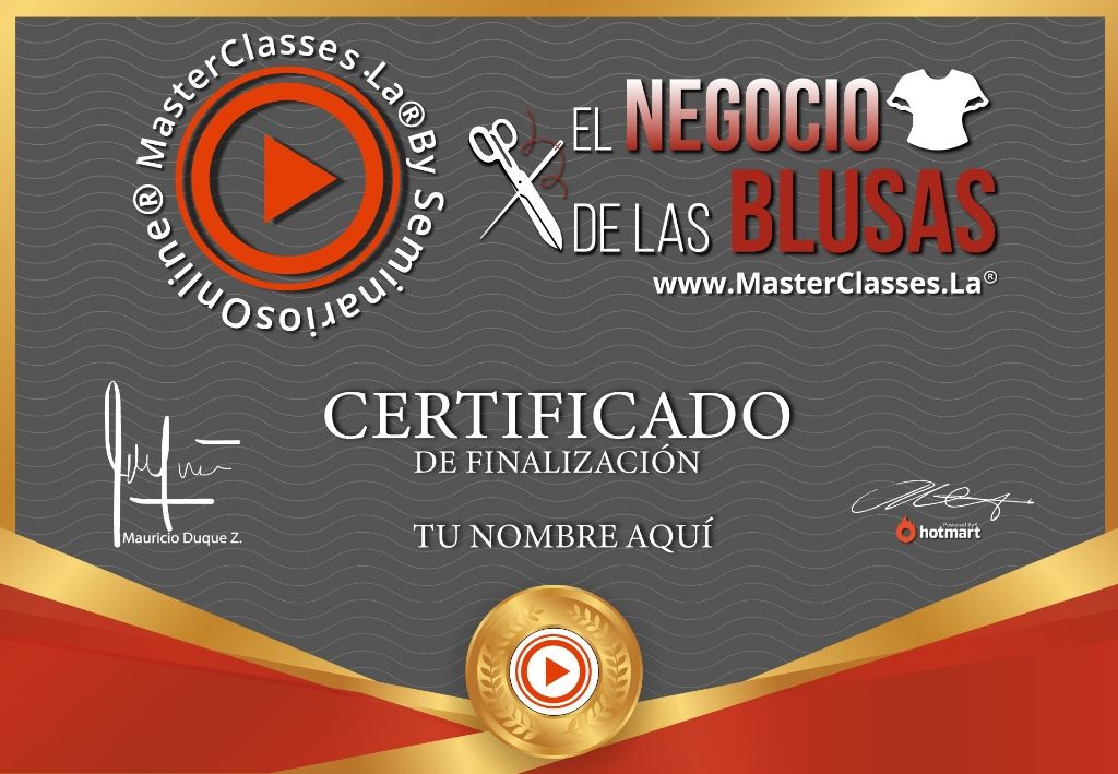 Descubre el MasterClass «El Negocio de las Blusas» y aprende los secretos y estrategias para desarrollar proyectos rentables en la industria de la moda. Aprenderás a diseñar y confeccionar blusas camiseras exclusivas, dominarás las técnicas de patronaje y tomar medidas correctamente. Obtén seguridad en tus productos, desarrolla patrones únicos y aprende a trabajar con diferentes materiales y tejidos. Conviértete en un experto en la confección de blusas y logra hasta 12 diseños diferentes. Obtén tu certificado avalado por Hotmart y Seminarios Online. ¡No pierdas la oportunidad de tener un negocio ganador!