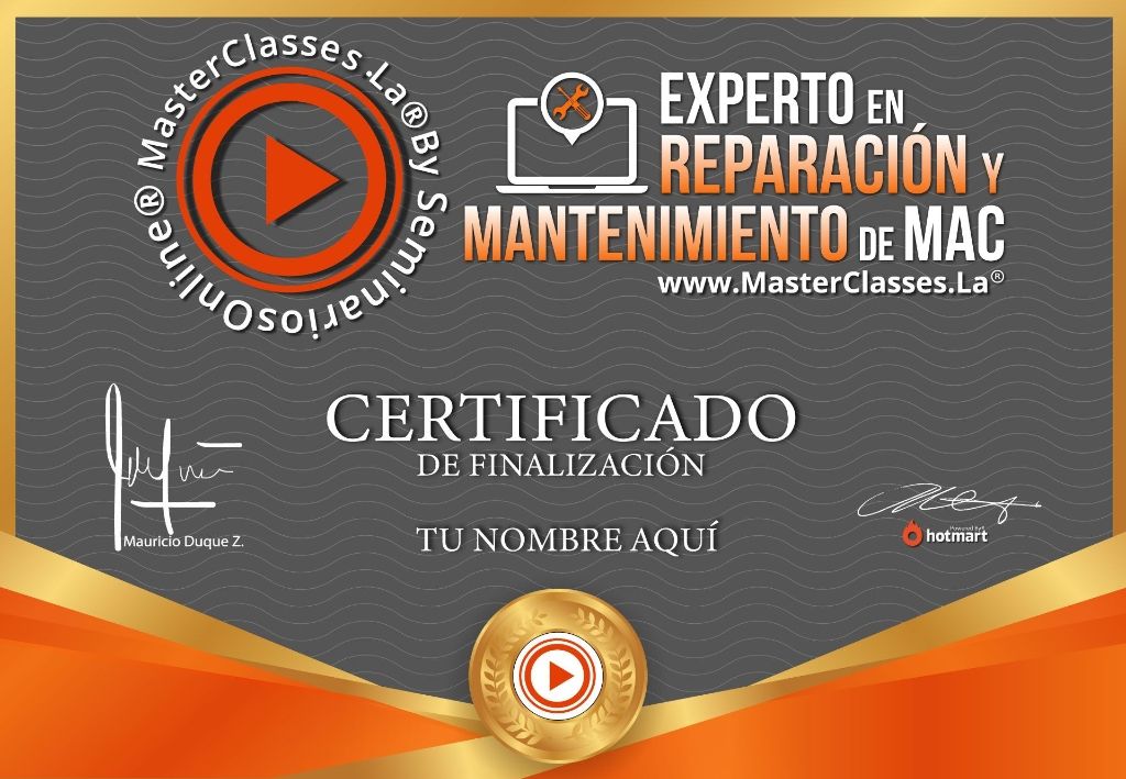 ¿Quieres convertirte en un experto en reparación y mantenimiento de equipos Mac? Con el MasterClass EXPERTO EN REPARACIÓN Y MANTENIMIENTO DE EQUIPOS MAC, podrás lograrlo. Aprenderás todo sobre diagnóstico, reparación y mantenimiento de equipos Mac, así como la metodología de un especialista en equipos Apple. Además, tendrás acceso a herramientas especializadas y exclusivas de Apple. Con este curso, podrás emprender tu propio negocio en casa y generar altos ingresos. No pierdas la oportunidad de obtener el certificado avalado por Hotmart y Seminarios Online. ¡Únete ahora y conviértete en un experto en equipos Mac!