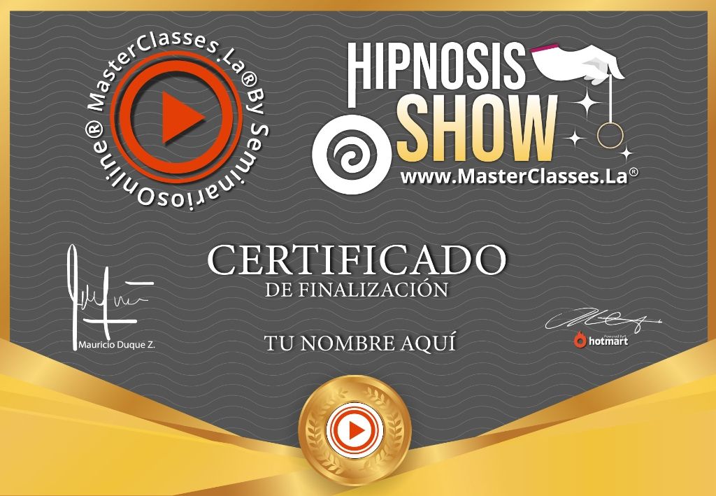 ¡Descubre el increíble curso MasterClass HIPNOSIS SHOW! Aprende a hipnotizar rápidamente y sorprende a tu público con ejercicios prácticos y técnicas de hipnosis rápida. Resuelve tus dudas sobre la hipnosis, aprende a presentarla correctamente y desarrolla habilidades de sugestión en cualquier contexto. Obtén una guía completa en PDF, acceso a videos complementarios y al grupo privado de Telegram. ¡No te pierdas la oportunidad de obtener un certificado avalado por Hotmart y Seminarios Online!