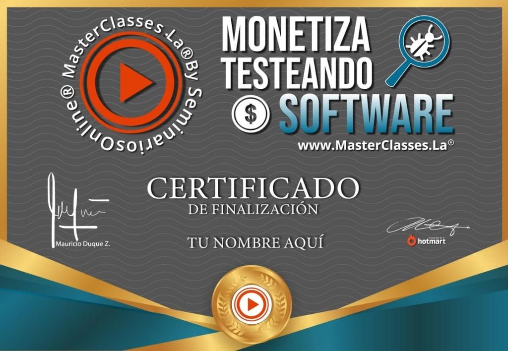 ¡Conviértete en un tester acreditado y comienza a trabajar en menos de un mes con el MasterClass MONETIZA TESTEANDO SOFTWARE! Aprende las técnicas necesarias para probar aplicaciones, sitios web, programas y juegos, encontrando errores y reportándolos. Participa en proyectos pagos y solo necesitas un dispositivo móvil y una computadora. ¡No necesitas conocimientos previos de informática! Obtén un certificado avalado por Hotmart y SeminariosOnline. ¡No pierdas esta oportunidad de encontrar trabajo y generar altos ingresos!