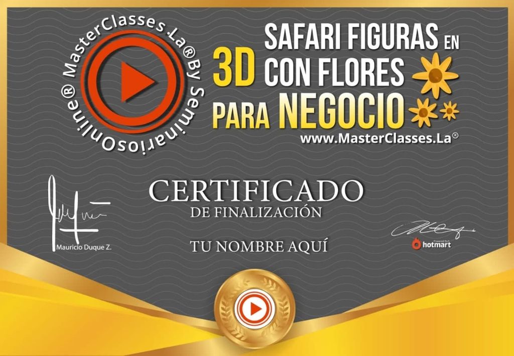 Descubre el MasterClass SAFARI FIGURAS 3D CON FLORES PARA NEGOCIO y lleva tu negocio de floristería a otro nivel. Aprende a crear diseños exclusivos y originales, desarrolla habilidades competitivas y amplía tu portafolio con 20 nuevos diseños. Con técnicas de modelado y creatividad, podrás innovar en la industria floral y destacarte del resto. Obtén un certificado avalado por Hotmart y Seminarios Online. No pierdas la oportunidad de posicionarte exponencialmente y hacer algo novedoso en tu negocio.