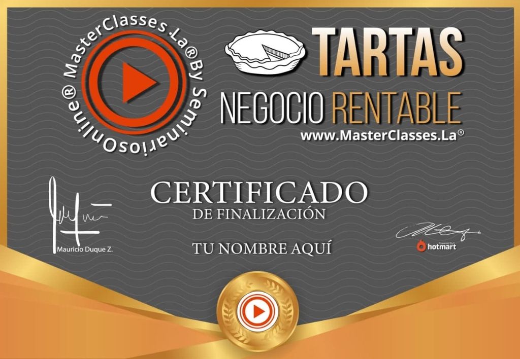 Descubre el MasterClass TARTAS: NEGOCIO RENTABLE y aprende las técnicas exclusivas de los grandes maestros pasteleros. Con este curso completo de 10 módulos y 35 videos, dominarás diferentes tipos de decoración, rellenos con frutas, cremas, flameados, montajes artísticos y más. Aprenderás desde la aplicación de diferentes moldes hasta la elaboración de pasta quebrada y la creación de deliciosas tartas dulces y saladas. Obtén tu certificado descargable avalado por Hotmart y Seminarios Online. ¡No pierdas la oportunidad de convertirte en un experto en tartas y hacer de este arte un negocio rentable!